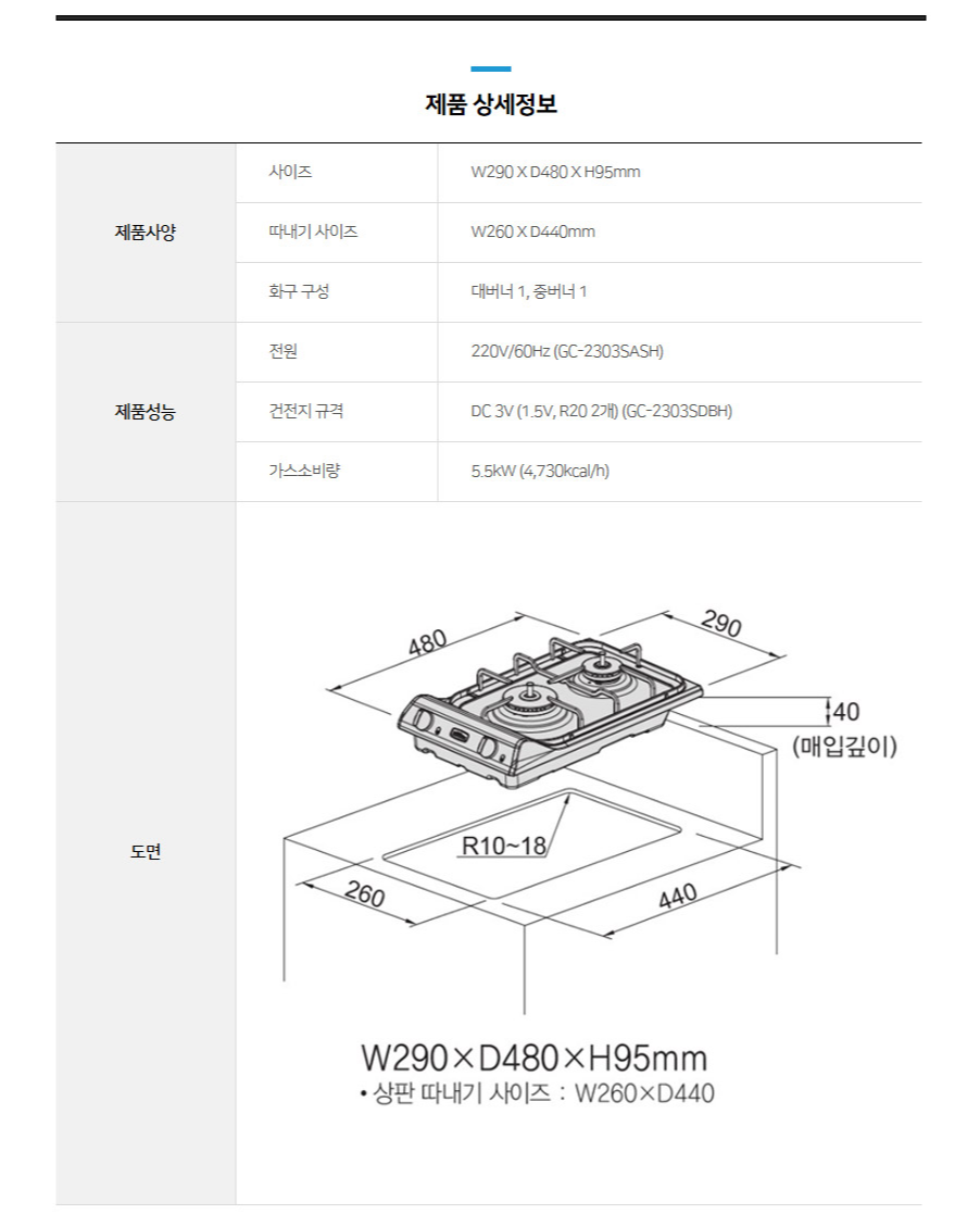 하츠 가스 2구 GC-2303SDBH (세로형)