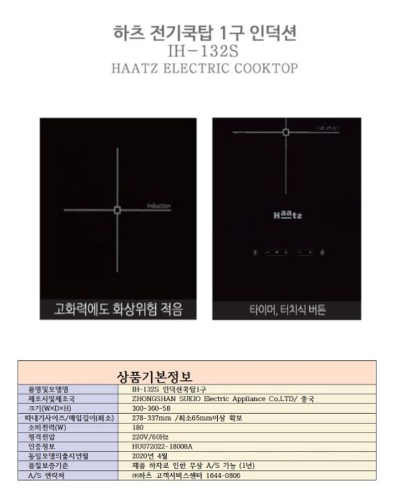 하츠 인덕션 1구 IH-132S