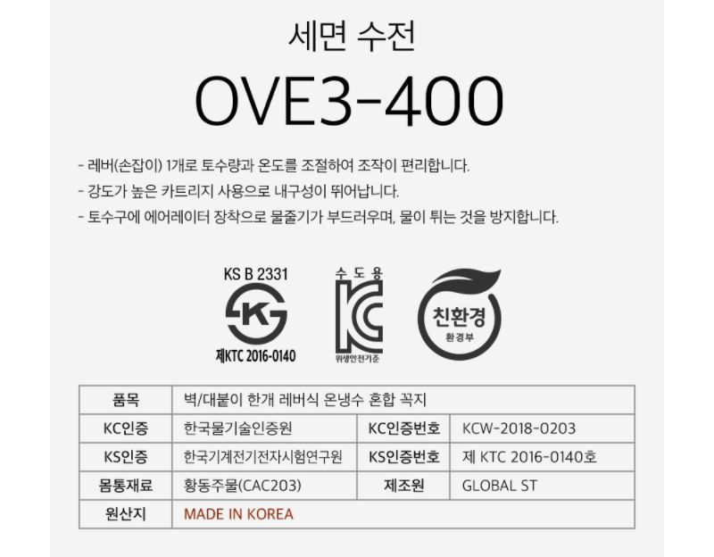 세면 수전 OVE3 - 400