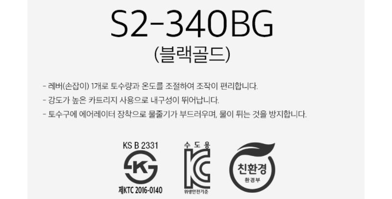 세면대용 원홀 수전 S2-340BG 블랙골드
