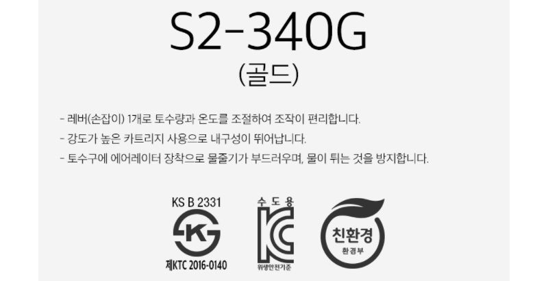 세면대용 원홀 수전 S2-340G (골드)