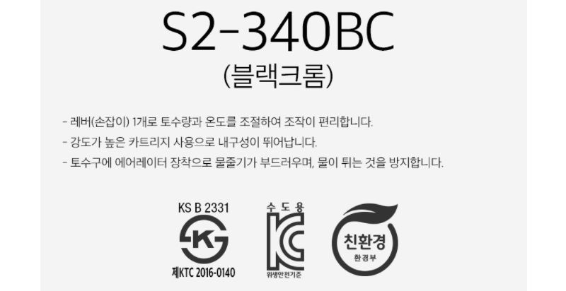 세면대용 원홀 수전 S2-340BC (블랙크롬)