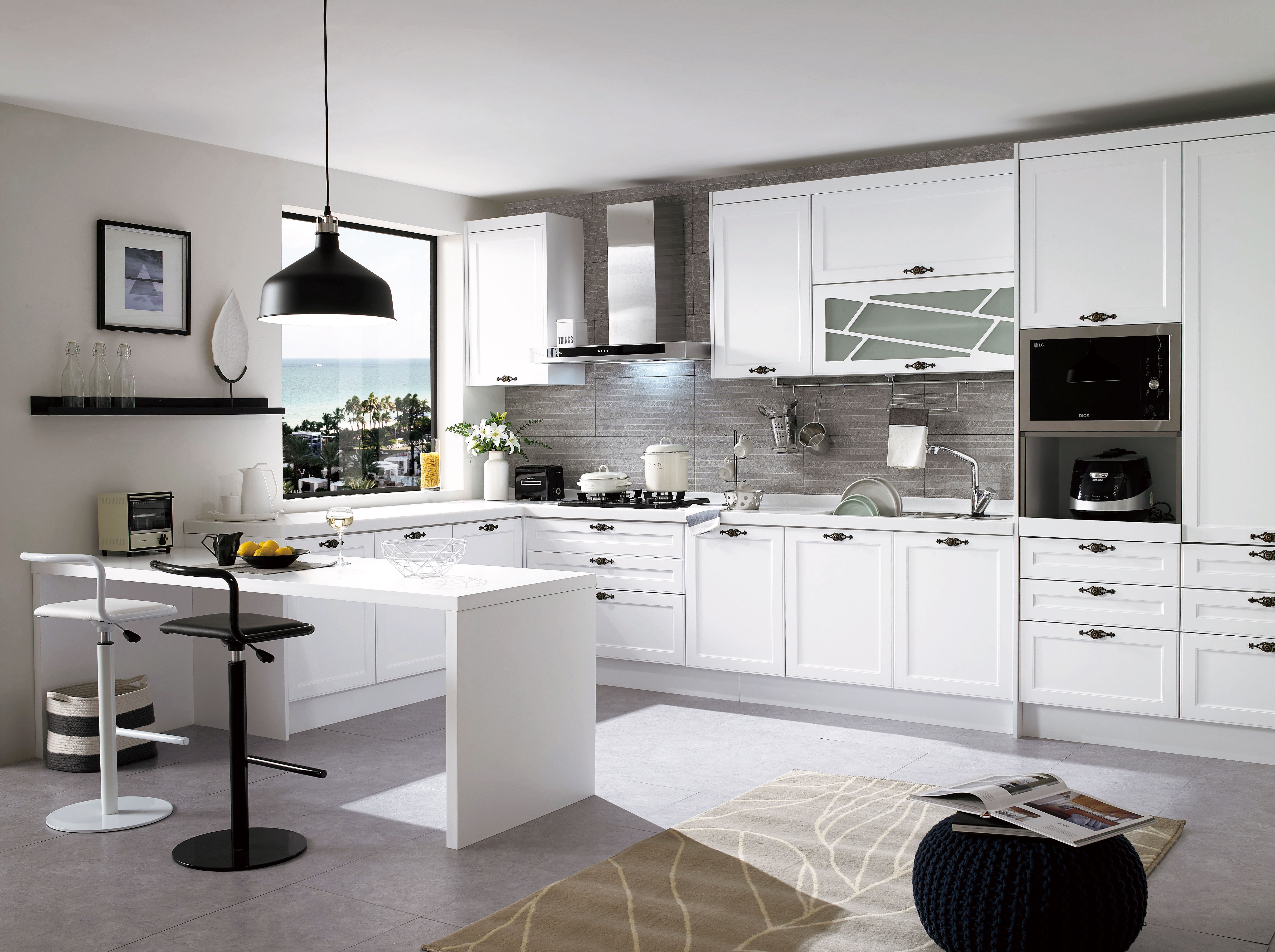 깨끗하고 깔끔한 화이트 도장 위에 엔틱한 손잡이가 조화를 이룬 고급서러운 주방가구 입니다. 손잡이와 잘 어우러져 세련미를 동시에 느낄 수 있는 아름다운 제품입니다.