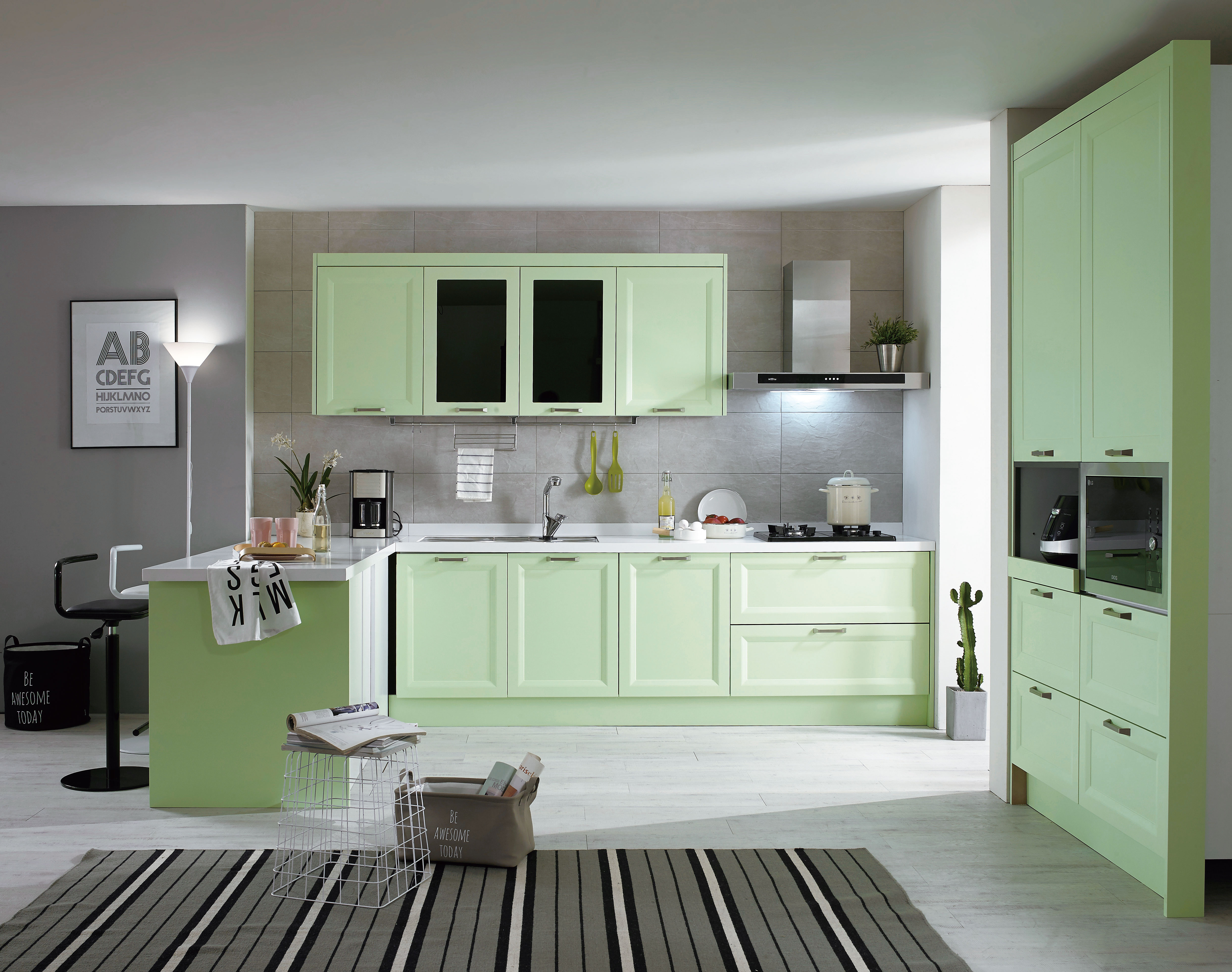 산뜻한 그린 컬러가 개성있는 나만의 공간을 연출해줍니다. 독특한 컬러의 도장이 주방을 넘어 집 전체에 생기를 불어넣습니다. 모두의 시선을 사로잡을 수 있는 특별한 공간을 선물합니다