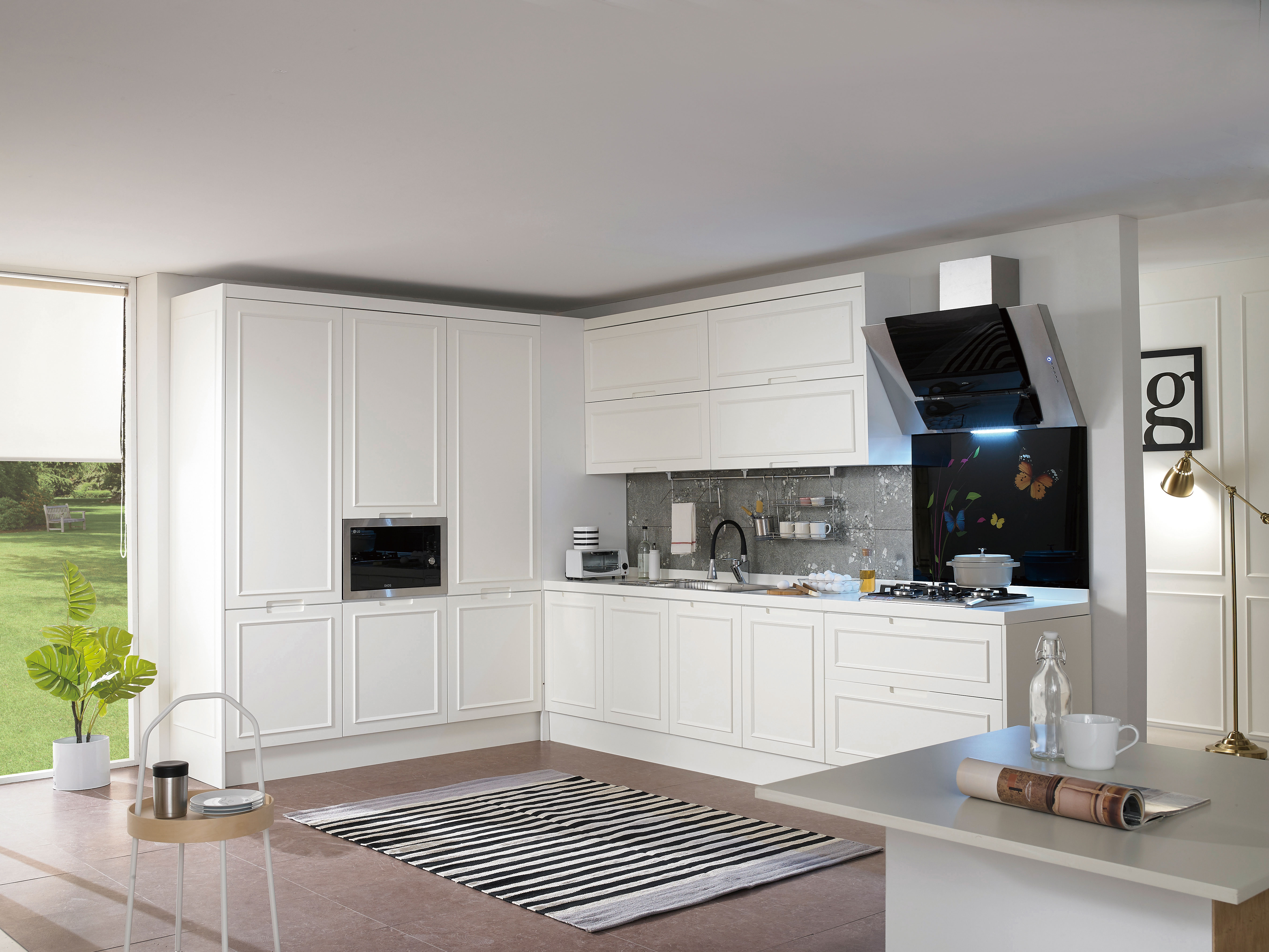 자칫 지루할 수 있는 주방을 밀키화이트 도장으로 한층 세련되게 꾸몄습니다. 불륨감 넘치는 곤죽 디자인 위로 자체적으로 NC 작업을 통하여 별도의 손잡이 없이도 쉽게 여닫을 수 있게 제작하였습니다. 우아하고 질리지 않는 주방을 여러분께 선사합니다.